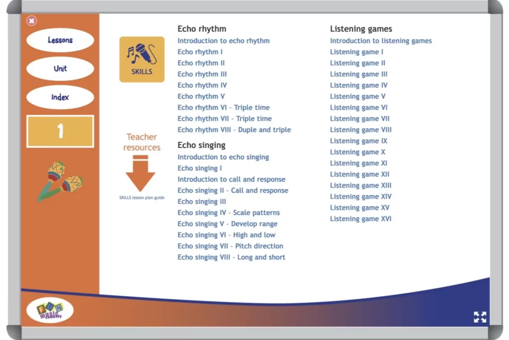 Complete SKILLS development program with rhythm, singing and listening.